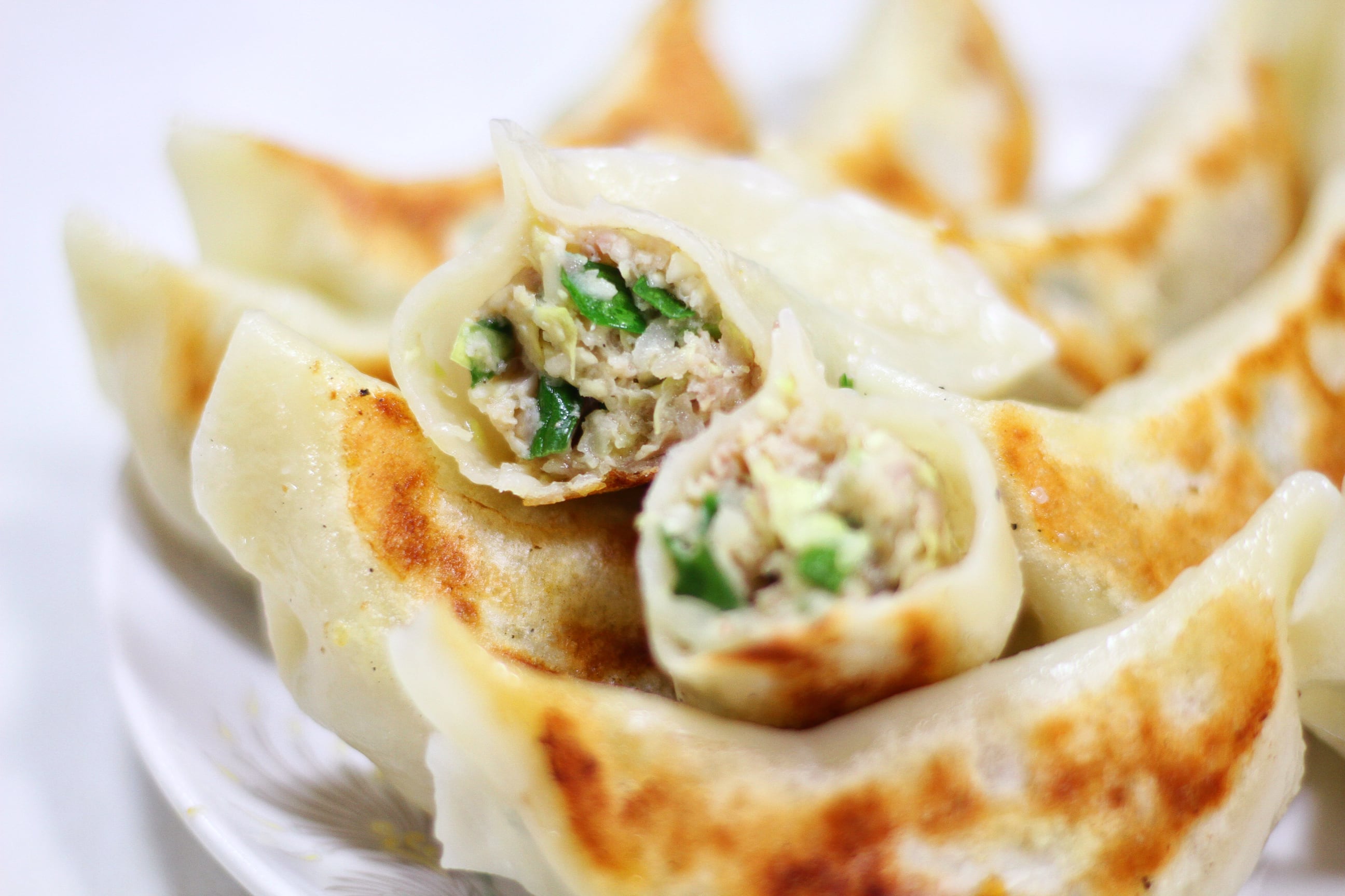 「餡」→キャベツやニラは季節によってその時に一番おいしい旬の産地のものに変え、使用するにんにくは、日本を代表するブランド“青森産の福地ホワイト六片”一粒一粒が大きく栄養がぎっしりと詰まっており、にんにくの王様とも呼ばれます。さらに、ジューシーさを出すために少々のラードを入れるのもポイント。国産の豚肉に無添加の醤油など、安心して食べられる材料を選び抜き、味付けされています。こうして作られた餡は、包む前に必ず生の状態でも味見をするなど、50年以上店の味を守り続ける、店主の譲れないこだわりです。